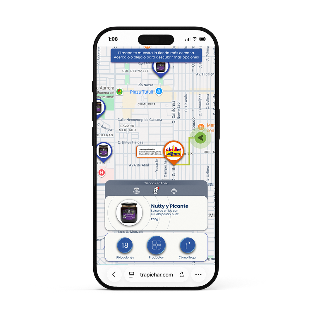El enlace y QR inteligente de Trapichar transforma cualquier espacio físico o digital en un canal de venta, conectando a tus consumidores con el punto de venta más cercano o tienda en línea para comprar tus productos.